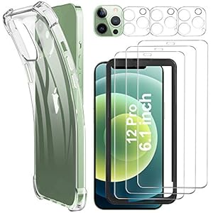Luibor [7 in 1] Schutzfolie kompatibel mit iPhone 12 Pro, Hülle und Kamera Panzerglasfolie,Soft TPU Bumper Hülle…