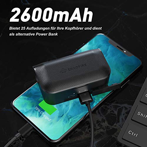【8 Stunden Spielzeit pro Aufladun】ENACFIRE F1 sind die kabellosen Kopfhörer mit der längsten Spielzeit, die auf Amazon verkauft werden. 8 Stunden mit einer einzigen Aufladung. Die 2600mAh tragbare Aufladebox lässt Sie Ihre Kopfhörer 25 Mal aufladen, wodurch Sie nochmal 200 Stunden Spielzeit genießen können (insgesamt 208 Stunden). Dadurch können Sie sich auf die Dinge konzentrieren, die Sie wollen.