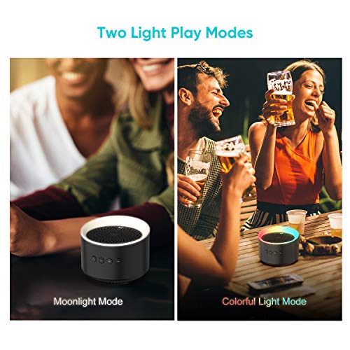 【LED Farbwechselmodi】 Dieser kabellose Bluetooth Lautsprecher ist stilvoll mit mehrfarbigen RGB LED Leuchten gestaltet und ermöglicht es Ihnen, die Beleuchtungsmodi je nach Stimmung in verschiedenen Szenen einfach zwischen Mondlicht und Regenbogen umzuschalten. Die LED Leuchten zeigen Ihnen individuelle Ringbeleuchtungseffekte und sorgen für ein erstaunliches audiovisuelles Erlebnis.