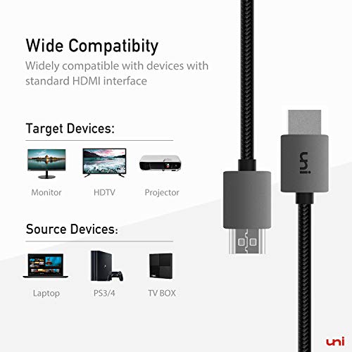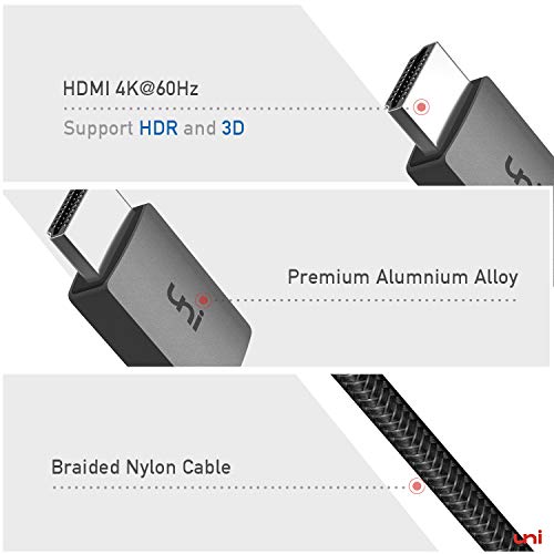 HDMI Kabel 4K@60Hz, uni 4K HDMI Kabel 1,8m, [Nylon geflochten, Aluminiumschale] 3D Ethernet-Funktion, Full HD, 1080p…