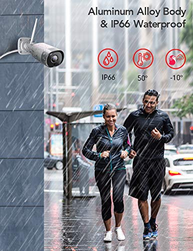[IP66 Wasserdicht/Antischäden]- Die drahtlose IHOUMI-Überwachungskamera für den Außenbereich besteht aus hochwertigem Zink-Aluminium-Legierungsmaterial. Dies bedeutet, dass diese drahtlose Überwachungskamera stark genug ist, um bei rauem Wetter wie Sturm und Schneewetter zu arbeiten. IHOUMI-Überwachungskameras sind Ihr treuer Vormund, egal in welchem Zustand.