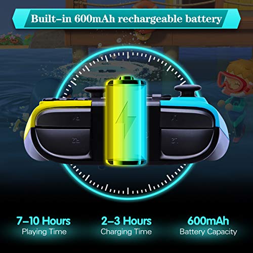 【Lange Akkulaufzeit & Bluetooth Verbindung】Bluetooth Wireless Remote Controller eingebaute 600mAh Lithiumbatterie kann nach vollen Ladung ca. 7-10 Stunden ununterbrochen verwendet werden.Die Ladezeit beträgt ca. 2 Stunden。Dieser Switch Pro-Controller ist drahtlos und läuft mit hilfe Von bluetooth mit der Switch-Konsole verbunden werden,wobei die Pairing-Distanz bis zu 10 m betragen kann.