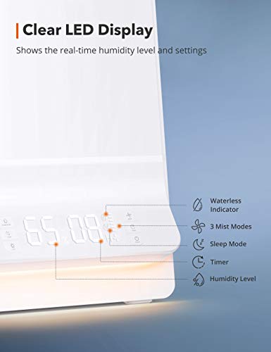 Deutliches LED-Display: Sehen Sie die Echtzeit-Luftfeuchtigkeit und die Einstellungen auf einen Blick; das LED-Display schaltet sich im Schlafmodus aus, damit Sie unbehelligt schlafen können