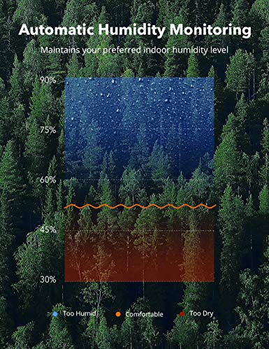 Automatische Kontrolle der Luftfeuchtigkeit: Der integrierte Hygrostat prüft die Luftfeuchtigkeit in Ihrem Zimmer und passt die Nebelintensität für optimale Innenraum-Luftfeuchtigkeit automatisch auf das von Ihnen eingestellte Luftfeuchtigkeitsniveau an