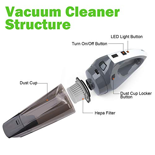【Nur Trockener Müll und Helles LED Licht】 : der akku handstaubsauger kann nur für trockenen müll verwendet werden, er kann nicht für die flüssigkeitsreinigung verwendet werden. das LED-licht eignet sich hervorragend für dunkle ecken und die reinigung bei nacht.