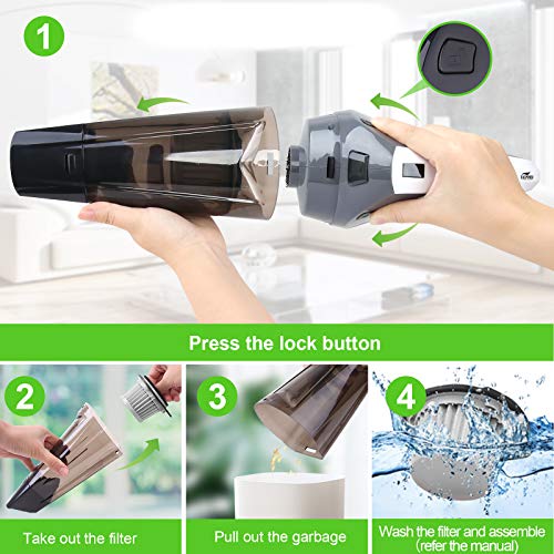 【Verbesserter waschbarer Hepa-Filter Handstaubsauger】: unser handstaubsauger akku verfügt über einen hepa-filter aus edelstahl. der filter ist waschbar. trocknen sie den filter an der luft, bevor sie ihn wieder verwenden. der nassfilter funktioniert nicht.